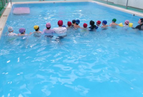 みんなで大きなプールで渦巻を作ったり、波をおこしたり…